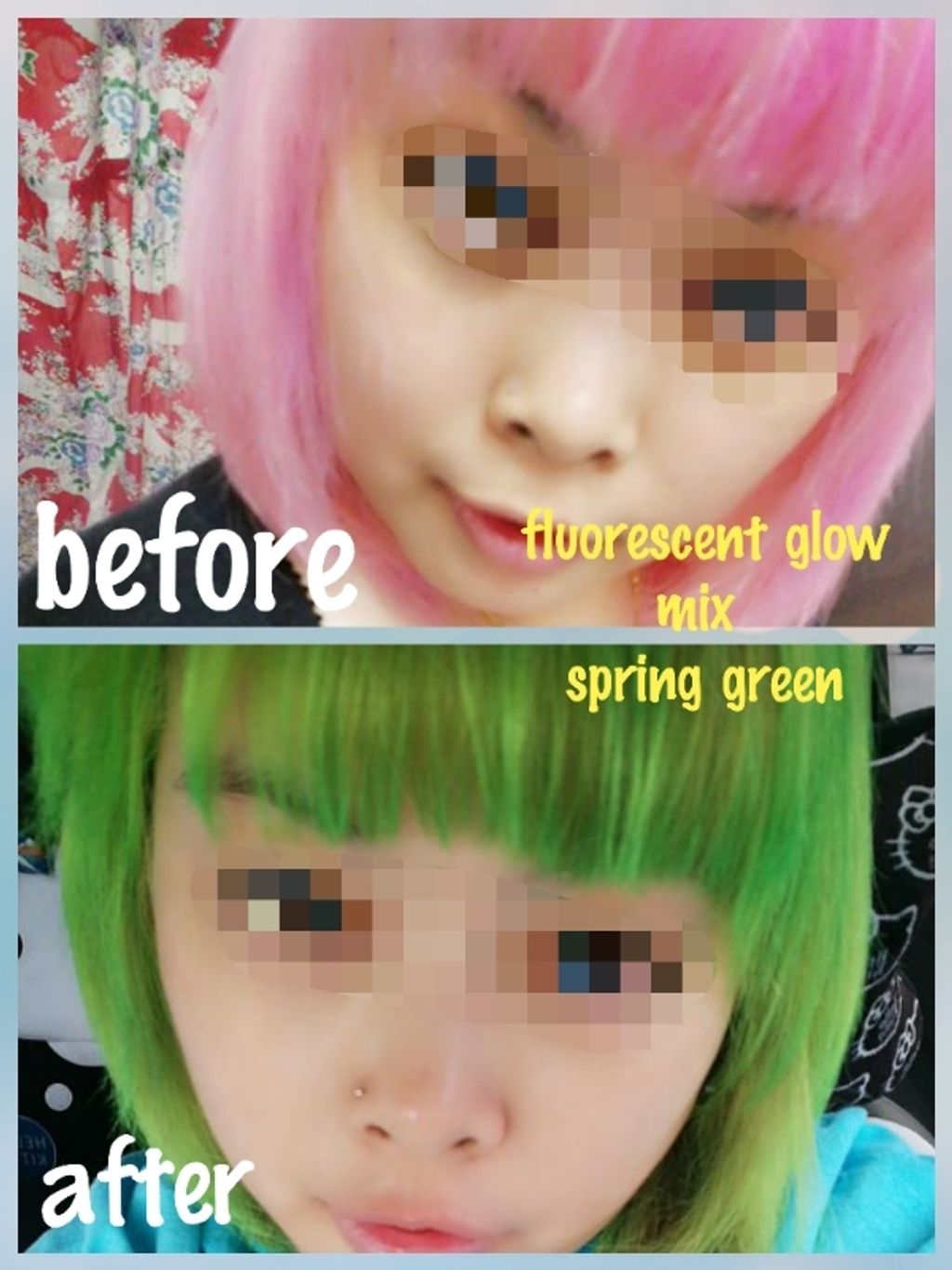 否则:蓝色染出来是绿色甚至还是黄色;绿色、粉色和紫色染完也还是偏黄色——类似这样的染后效果大多是因为没有把头发漂得很浅。所以,要想染出的效果美,漂发比染发更重要哦!